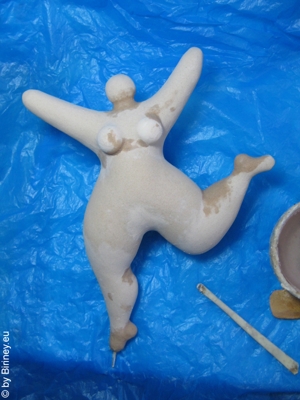 Arbeit an neuer Gartenfigur aus Zwei-Komponenten-Kunstharzmasse.
